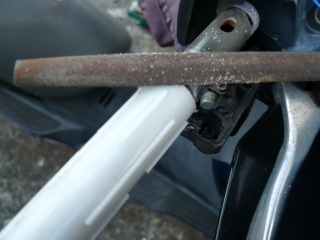 突っ張り棒を120mmでカットして、左用のグリップヒーターに差し込む。