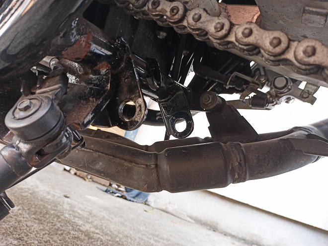 フレーム下には、ちゃんとセンスタ用の取り付け部分があります。
