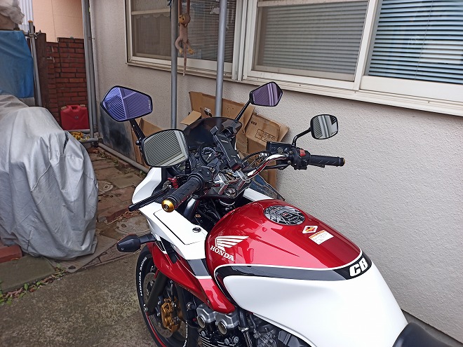 CB400SBは最初からハンドルのミラーポストが付いてるしね。