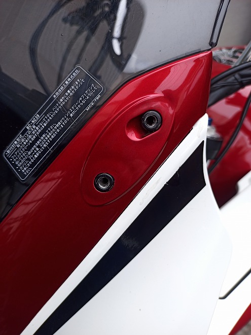 カウルについてるミラー。オヤジなのでどうも見づらい。