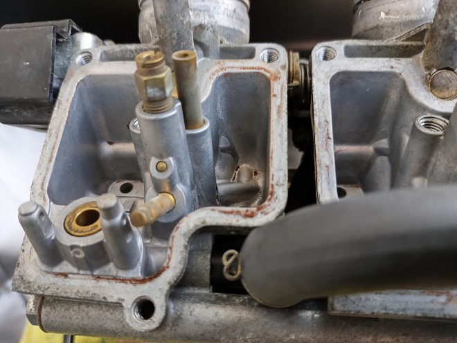 フロート室側分解。なんだか結構汚れてんなぁこれ。