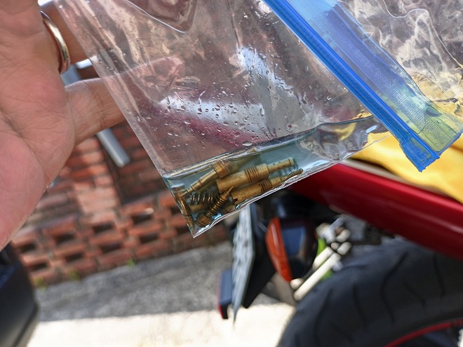 とにかく穴という穴にクリーナー吹いて、ジェット類は付け置き。