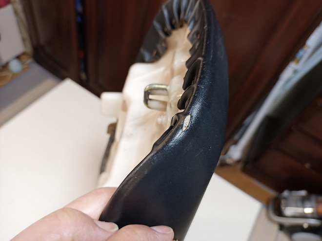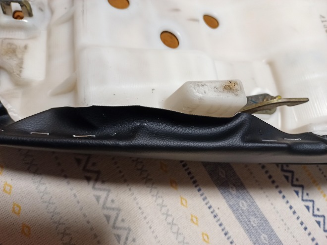 剥がしてみたらこのようにステープルの跡が。。。これ一回は張り替えてますね。