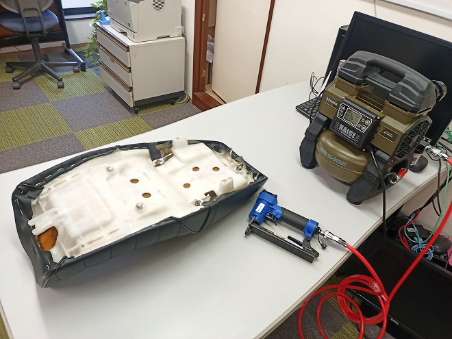 寒いのでシートでも張り替えて悦に入ろうかと。こんな感じで家に運びます。