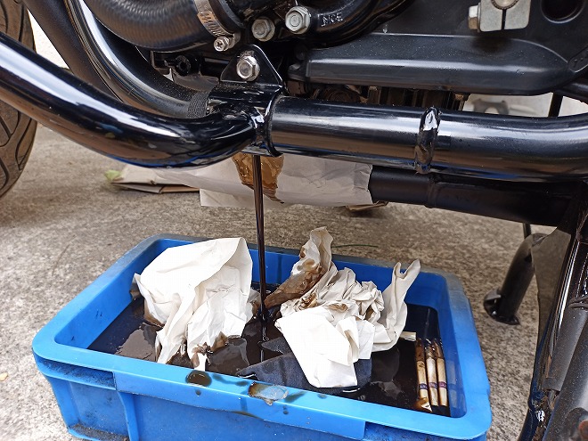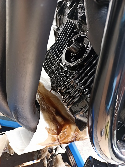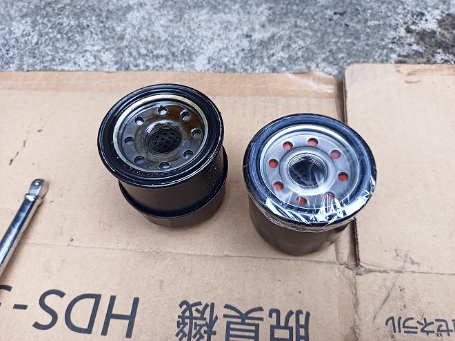 オイルフィルター外すと、オイル漏れてくるのでマフラーを新聞紙などで養生しておくと吉。