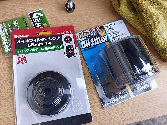 以前、マメ号のために買っておいたオイルフィルターレンチ、サイズがCB/Wと同じでラッキー。