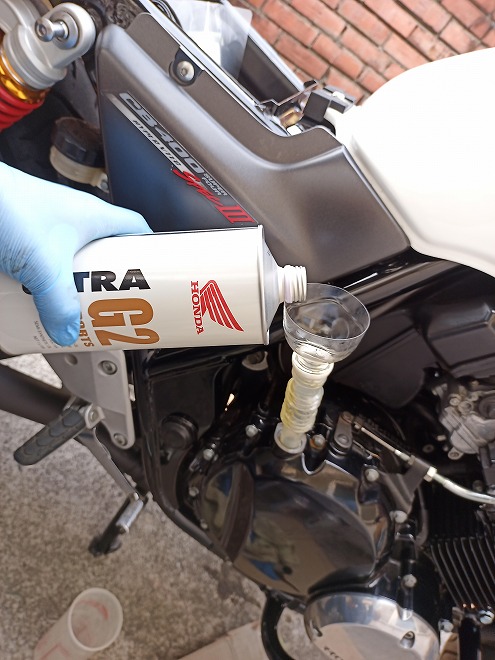 フィルター交換時は3.2Lとあるが。。。まぁ足りなかったらカブの時のG1が少し余ってるので。