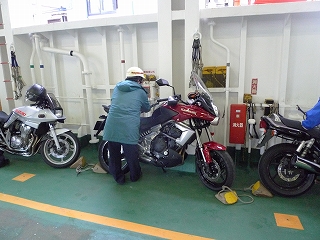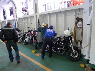 車検証は見せずに排気量だけ申告。バイクは車より先に乗船。