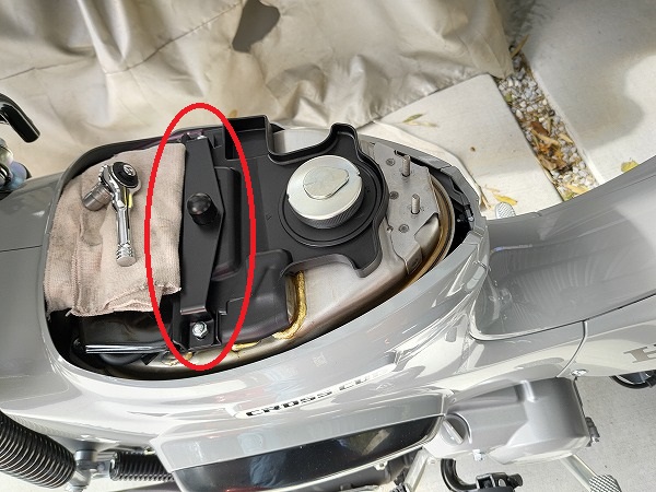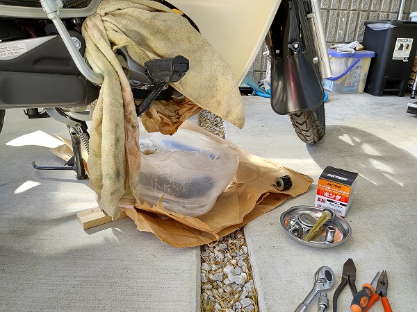 折角つけたレッグガードですが、外さないことには始まらないので外装いろいろバラします。