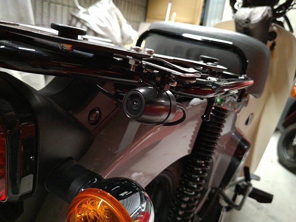 後日、後ろカメラは、このようなステーを作って位置を変更して取り付け直し。