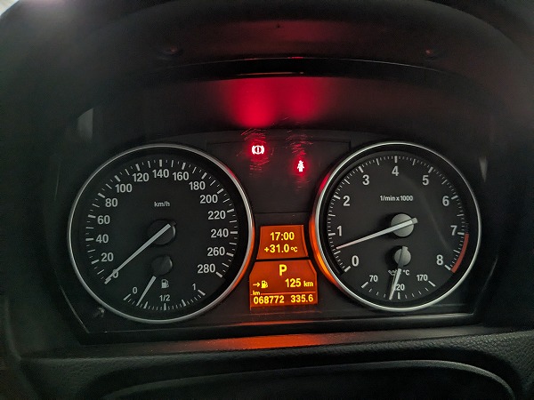 そういやそこまで考えてなかったと、E90君に乗り込みキーON(バッテリーは復活したので