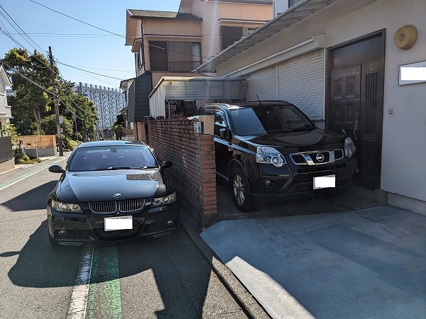 車庫から車道までは、人力で押して出してレッカー車にはウィンチで。