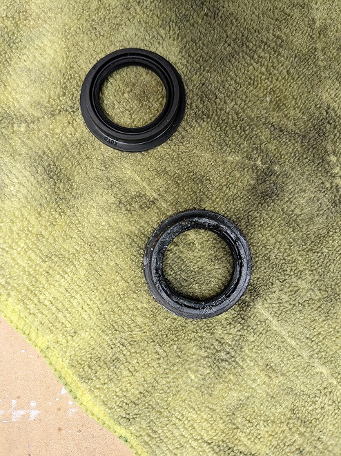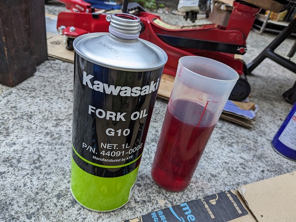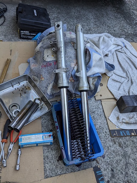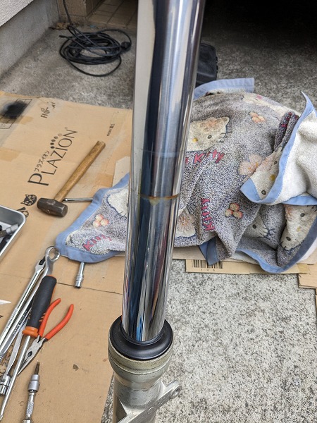 フォークの汚れも落とし、新しいオイルを入れて組み立てたら完成。