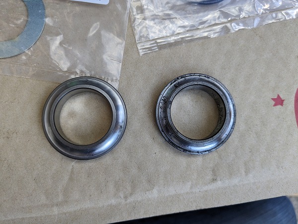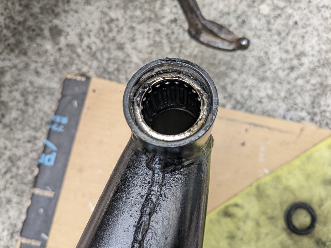フレーム側に残ってるベアリングレースをドライバーなどで上から叩いて外し