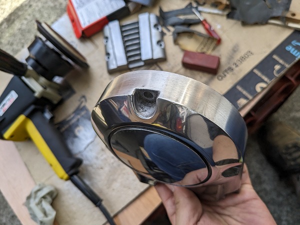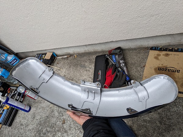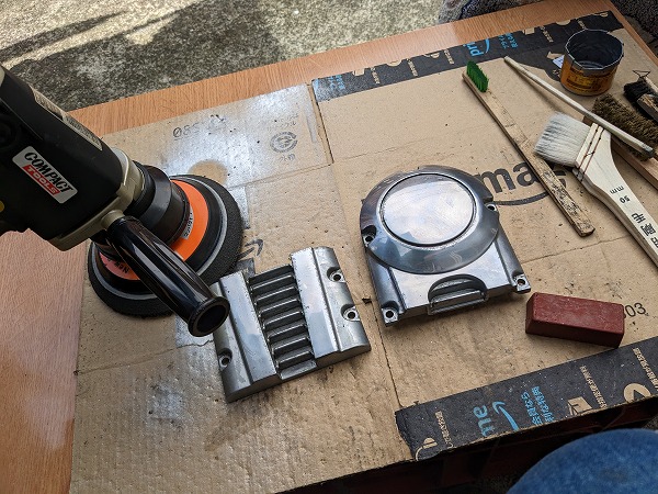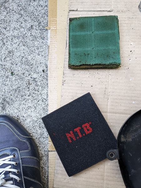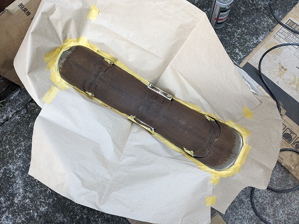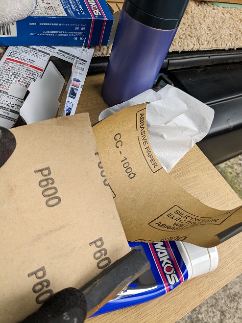 表側はそれなりに綺麗ですが、裏はご覧の通りなので、ここも紙やすり当てて
