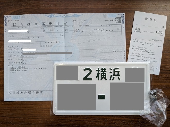 帰宅後、早速真新しいナンバーと、自賠責保険のシールを貼って、