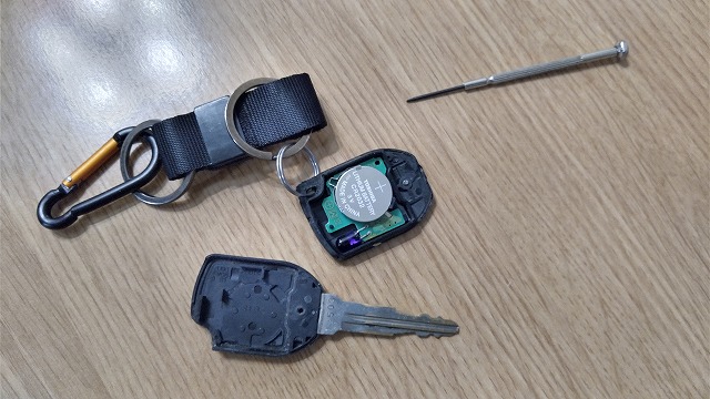 メインキーにボタンがついていたので「もしかしてリモコンで集中ドアロックできる?」かもと期待を込めてボタン電池も。