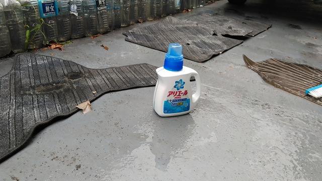 雨も大して降りそうもなかったので、カーペットカバーをアリエールで洗濯。