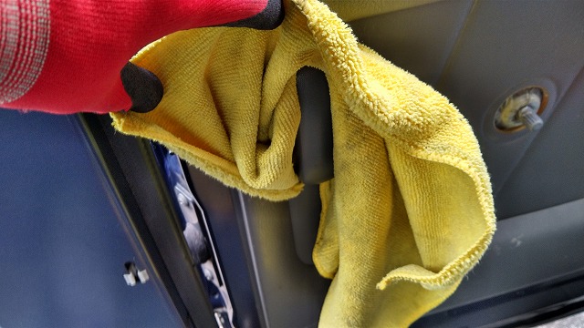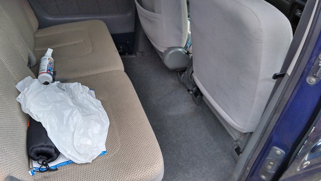 リヤの荷室のトリムや後部座席、全てのガラスの裏表、できるところは全部アルコール除菌!