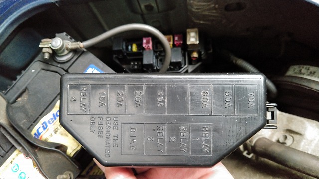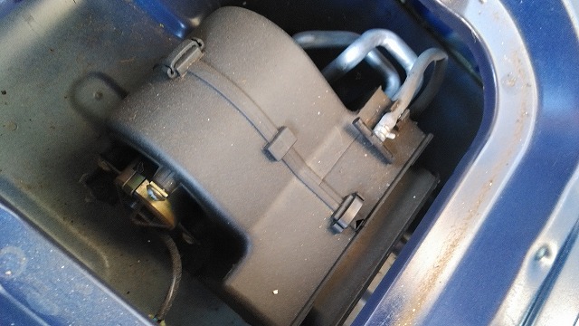 まずはシート下のエンジンルームを開けてヒューズボックスが無いか確認。