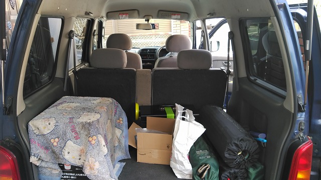 近い将来、リアハッチは内部から開けられるように改造予定ですが、こんなに詰めちゃって