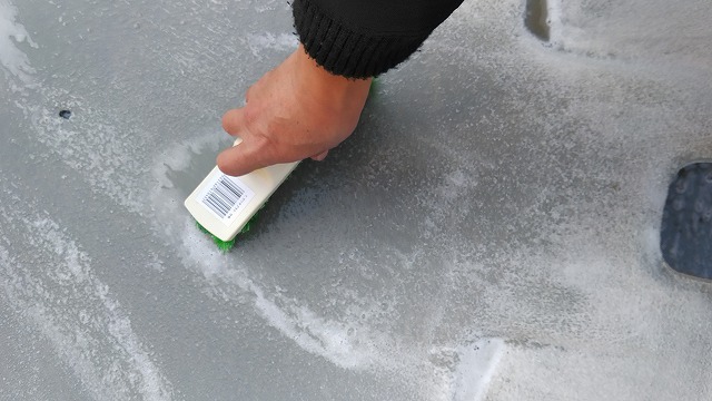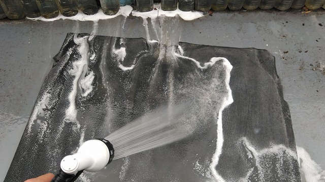 洗剤をだいたい洗い流したところで、このように水分毎バキューム。