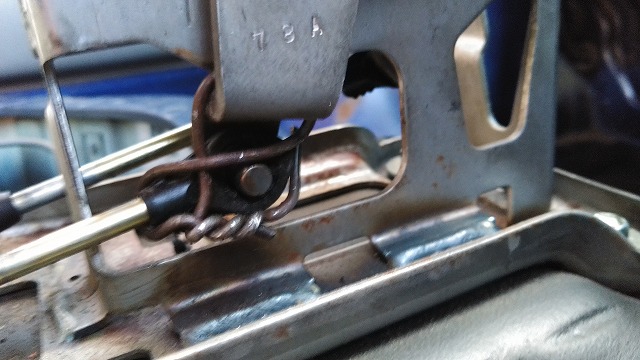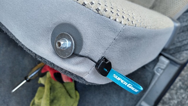 リアシートの背もたれを倒すために引っ張るレバー、こんな感じのものが経年劣化で折れていて