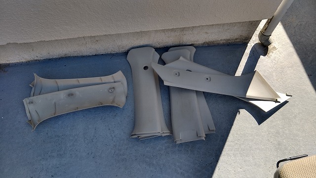 ルーフライニングがだいたい収まったので、残ってたピラーのトリムをとりつけ、