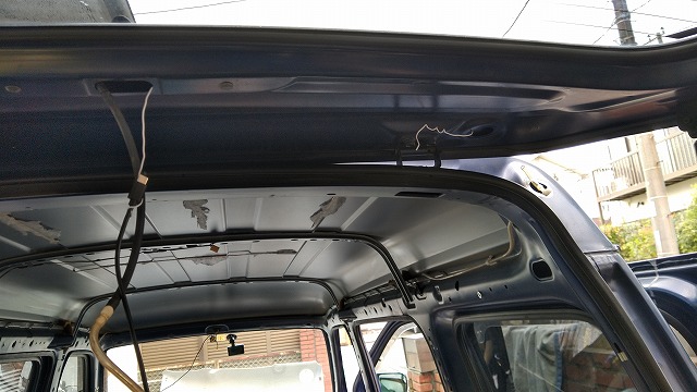 なお、ルーフライニング後方部分は、一部ねじ止めしてやった。