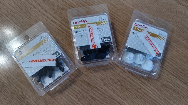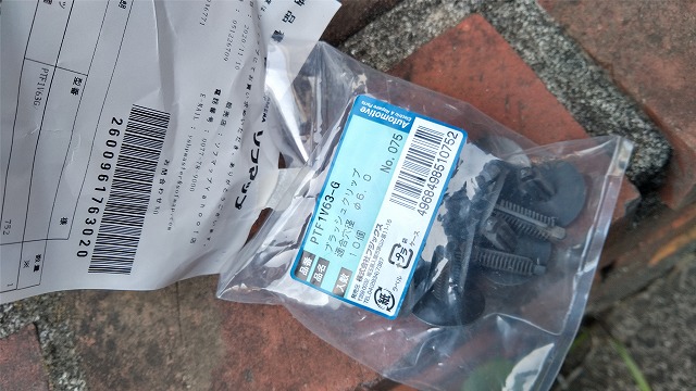数か所ブッシュクリップが浮いて取り付けられなかったところに、先ほどの新規入手した