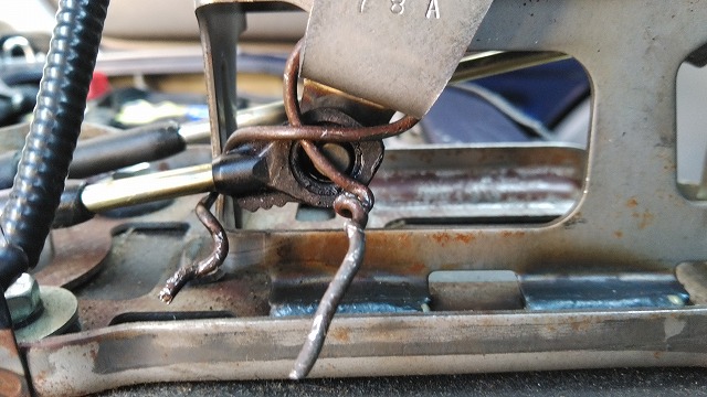 左右ともこんな状態。ペンチで引っ張らないと背もたれが倒せないので不便です。
