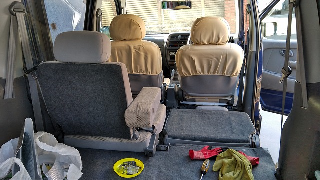 約40日ぶりに(作業はほぼ週末だけですが)シートが全部揃いこれにて内装は完成です。
