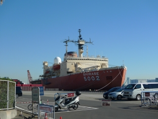 南極探検隊のしらせ(3世らしい)が係留されてる目の前にあるアサヒビール工場で