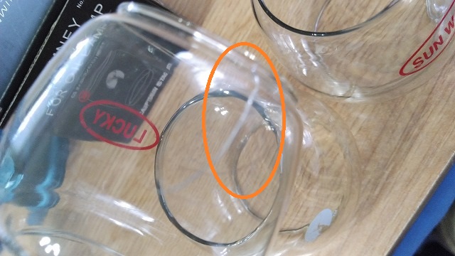 あ~、見えますかね。ホヤに大きくひび割れが。。。