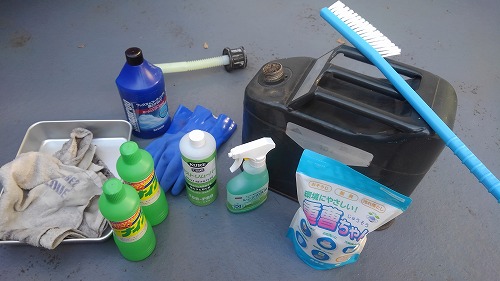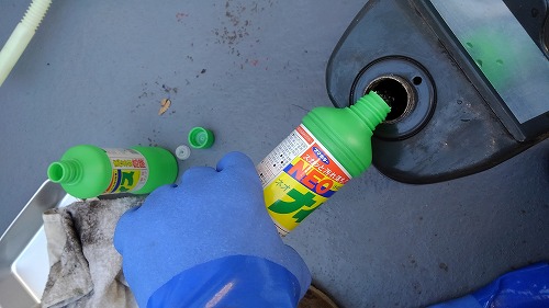 で、軽く水洗いしたらこれも100均で仕入れたサンポールもどき(ナイス)をどぼどぼ投入。