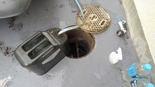 中身は念のため2Lペットボトル2本分だけ保管し、あとは排出。