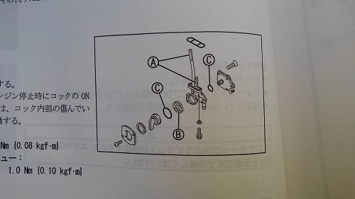 ガソリンタンク確認して、コックも外したとき、コック部分からのガソリン滲みを