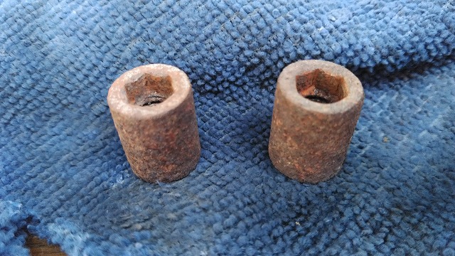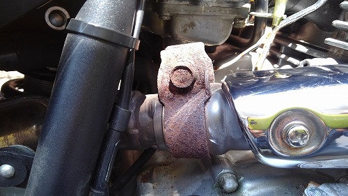 マフラーフランジを止めるこのナット。錆びすぎ。。。