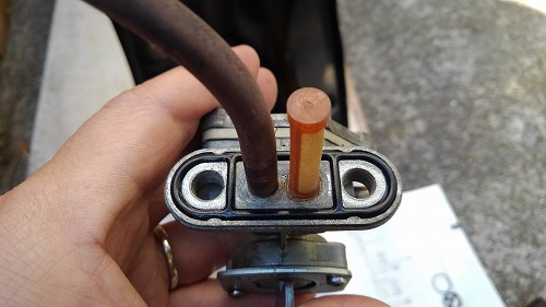 キャブへつながるチューブを抜いてON状態でガソリンがぽたぽた漏れていたので