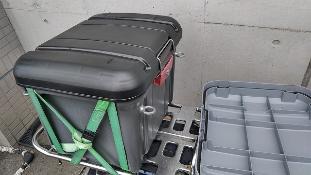 ここに、カブに乗せてるリアBOXを乗せ換えて使うのだ。