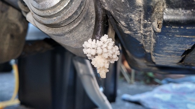 寒さも増してきてしまったしって、ドレンホースの下からポタポタとガソリンが漏れてたらしく