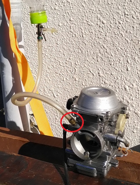 キャブを組み込まずにガソリン漏れを確認するためこのような装置を作成。