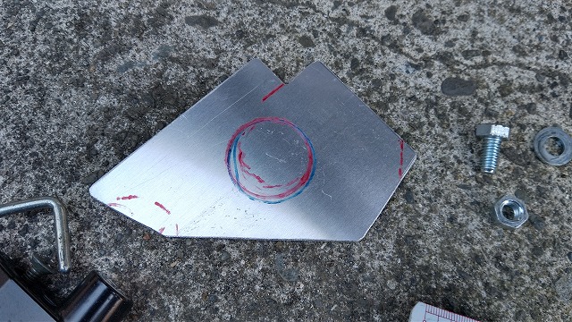 こうしてみた。厚みが出た分、ボルトの長さが足りず1本手持ちのもので代用。
