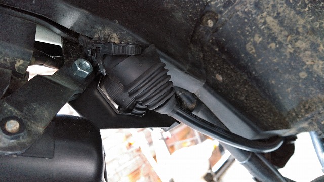 後ろ側は元通りと同じ直結。おかげで工具箱がカチあげ状態ですがね。