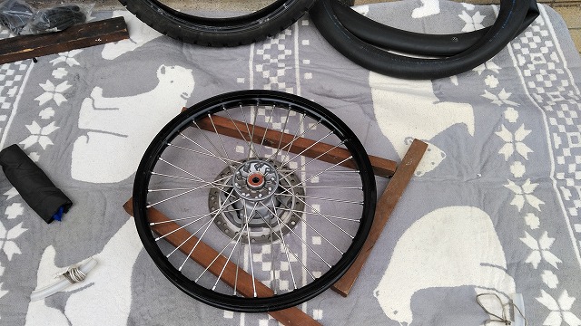 それでも、後輪をバイクから外してここまでちょうど1時間ぐらいです。