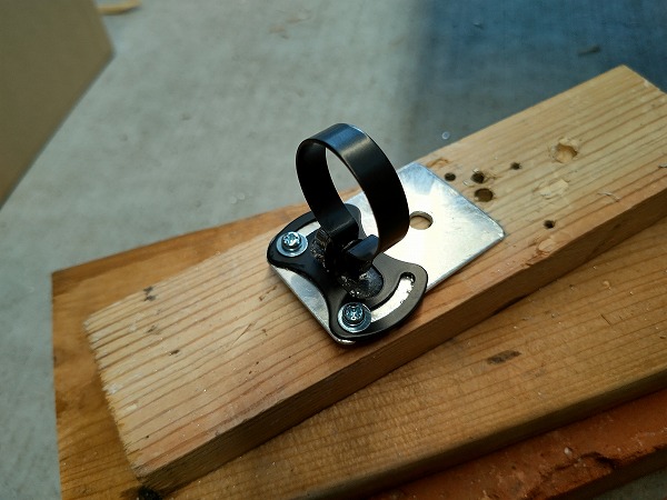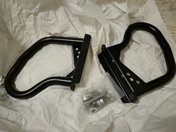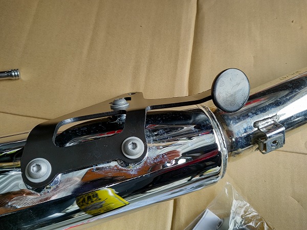 まぁ、ストッパー側にゴムが付いているのでこのままでもいいっちゃいいんですが、センスタ跳ね上げたときに、結構な勢いでエキパイを叩くことになり、既にえくぼが出来ちゃってるんですよね。(´;ω;`)。