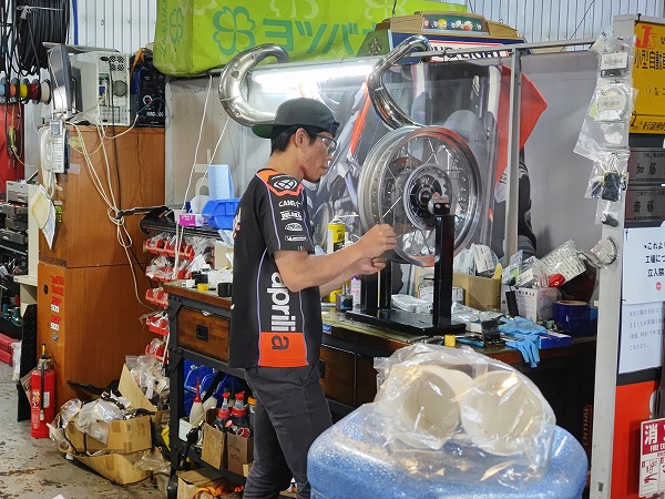 さて、店長がリムの振れ取りをしている間、もう一方がその他各部チェック。