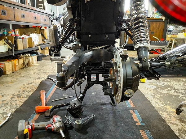 こうしてみると、スイングアーム末端部との距離がアゴスティーニ方が狭いですね。