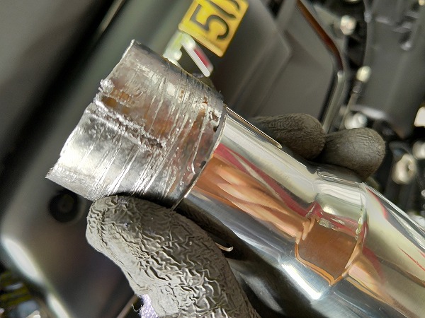 ガスケット入れなかったので排気ガス漏れが無いかどうか入念にチェック。
