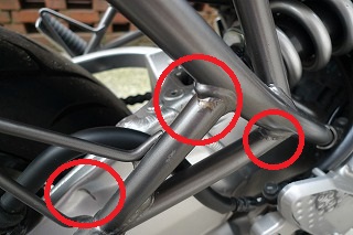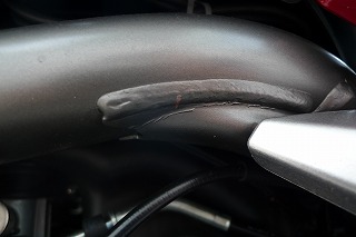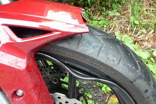 自爆状況:低速で(50km前後か?)のぼり峠道走行中、右カーブで転倒。